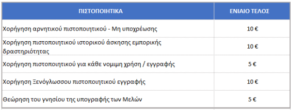 Επιπλέον, το Επαγγελματικό Επιμελητήριο Πειραιά χορηγεί – κατόπιν αιτήσεως των ταμειακώς ενήμερων μελών του και παράλληλης καταβολής του σχετικού τέλους – τα κάτωθι πιστοποιητικά: